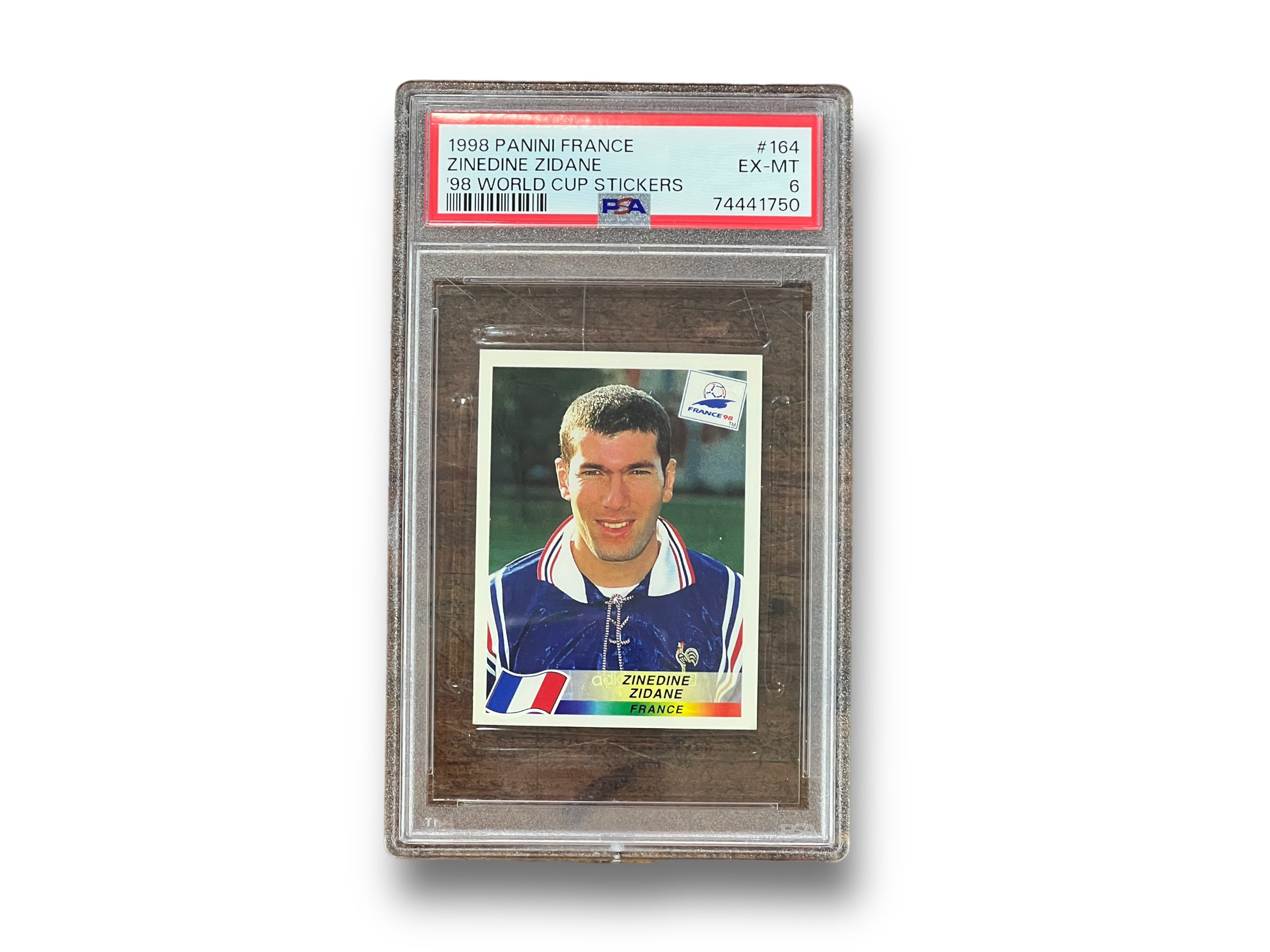Sticker del jugador de la selección de Francia Zinedine Zidane. Este sticker es del mundial 1998, Mundial en el que Francia se coronó campeón en su casa contra la Selección de Brasil.