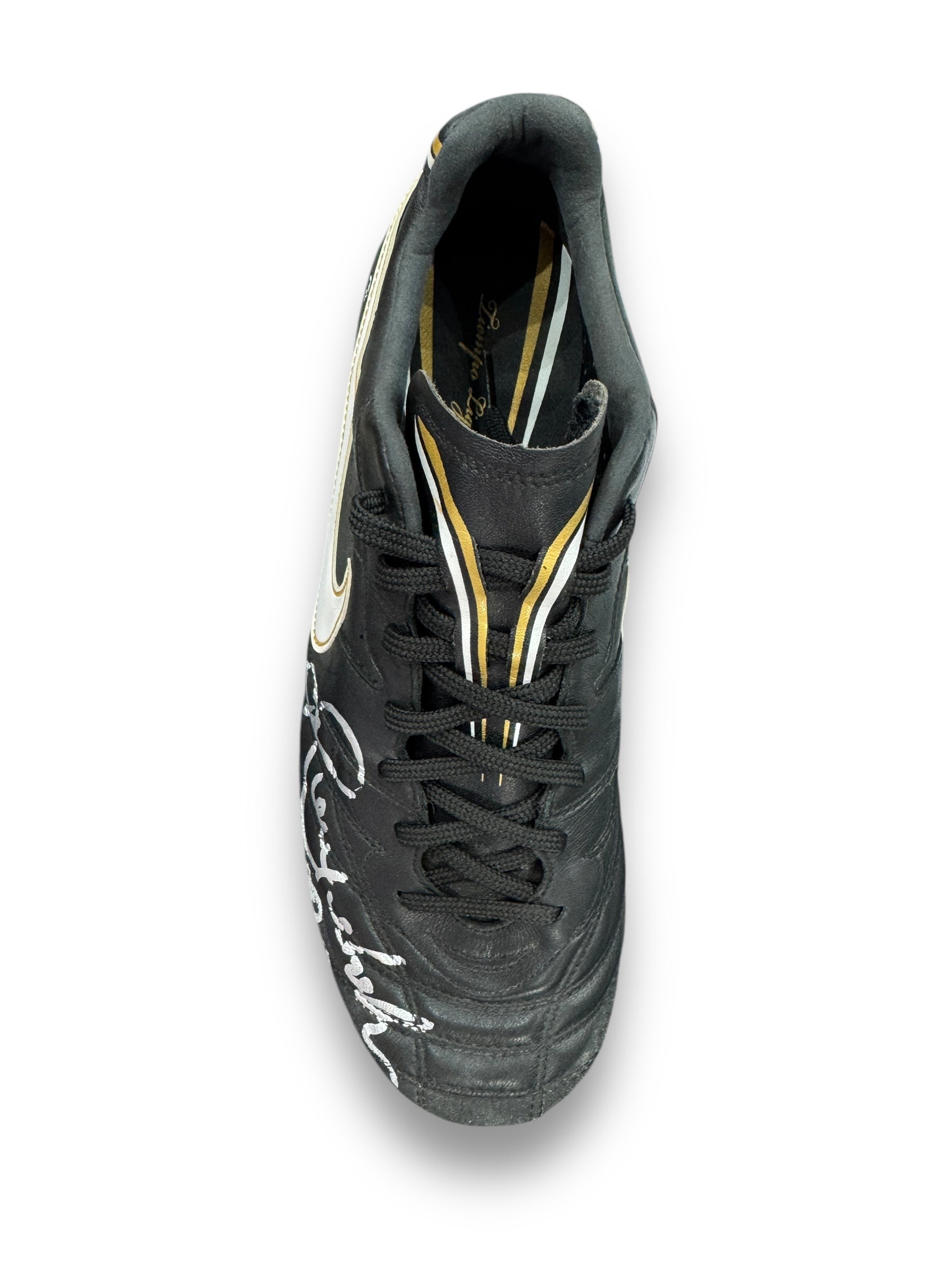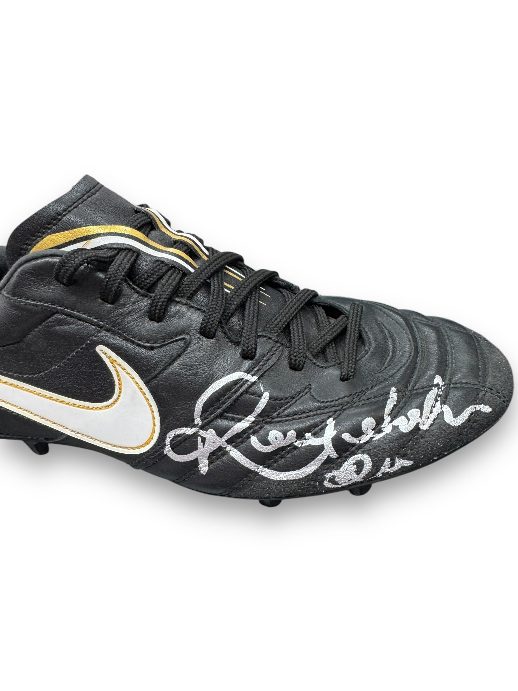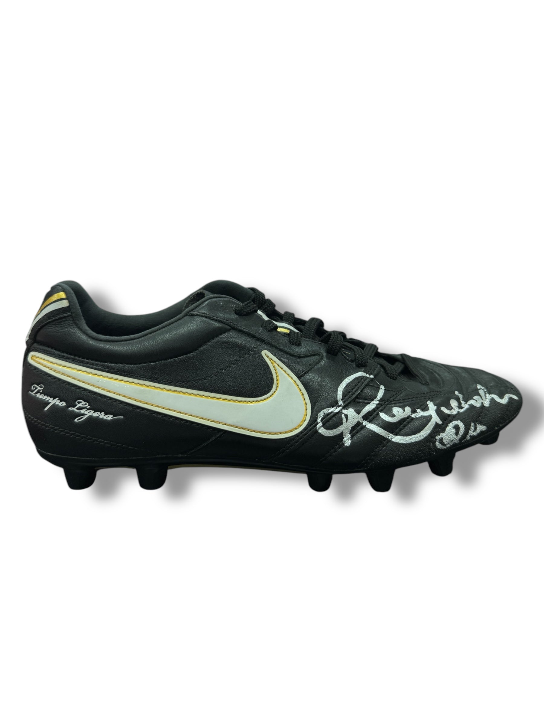 Tachón de futbol autografiado por el jugador leyenda de Brasil y del FC Barcelona, Ronaldinho. EDICION TIEMPO LIGERA