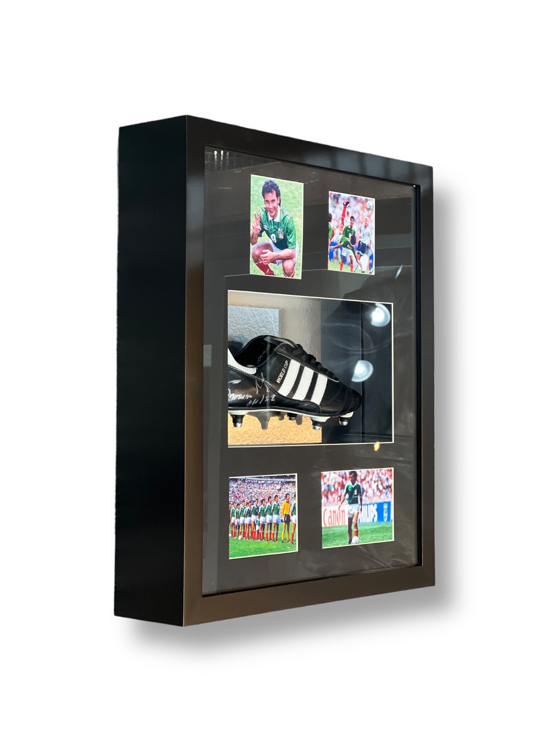 Taco Enmarcado por el exjugador Mexicano Hugo Sánchez. Este tachón es exactamente el mismo que usaba Hugo cuando jugaba en la Selección Mexicana y el Real Madrid en los años 80.