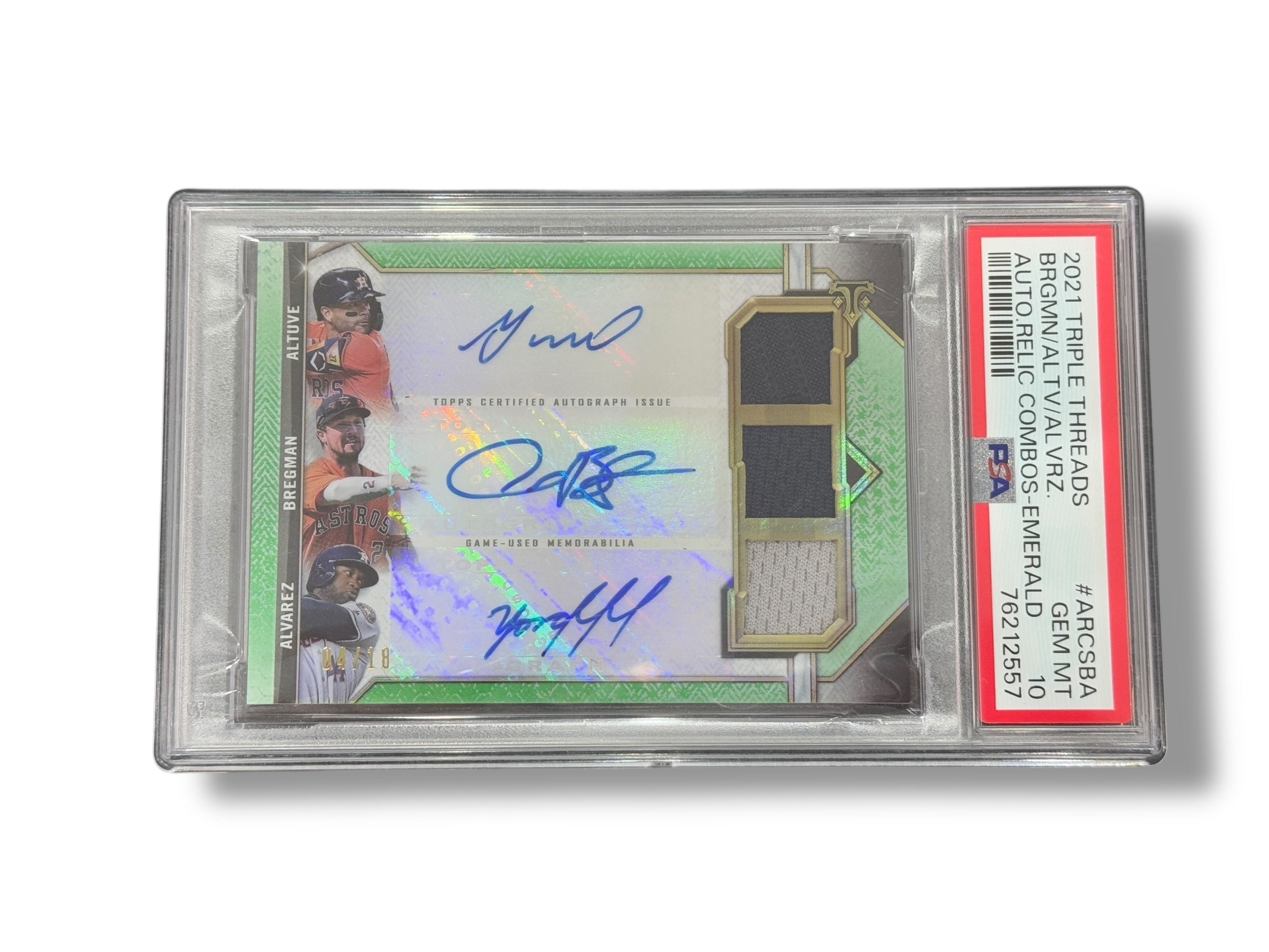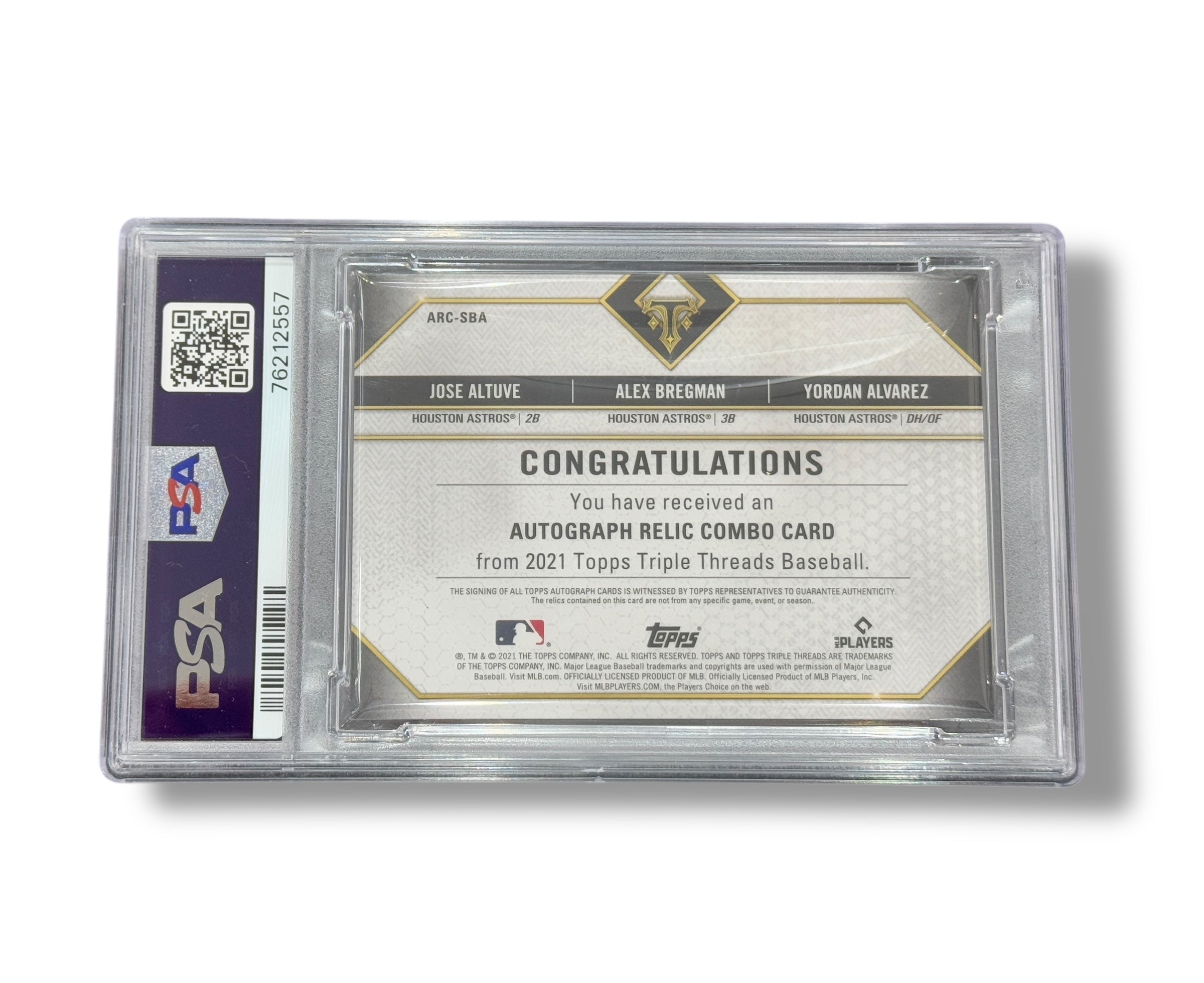 Tarjeta de los jugadores de los Astros Altuve, Bregman y Yordan Álvarez.