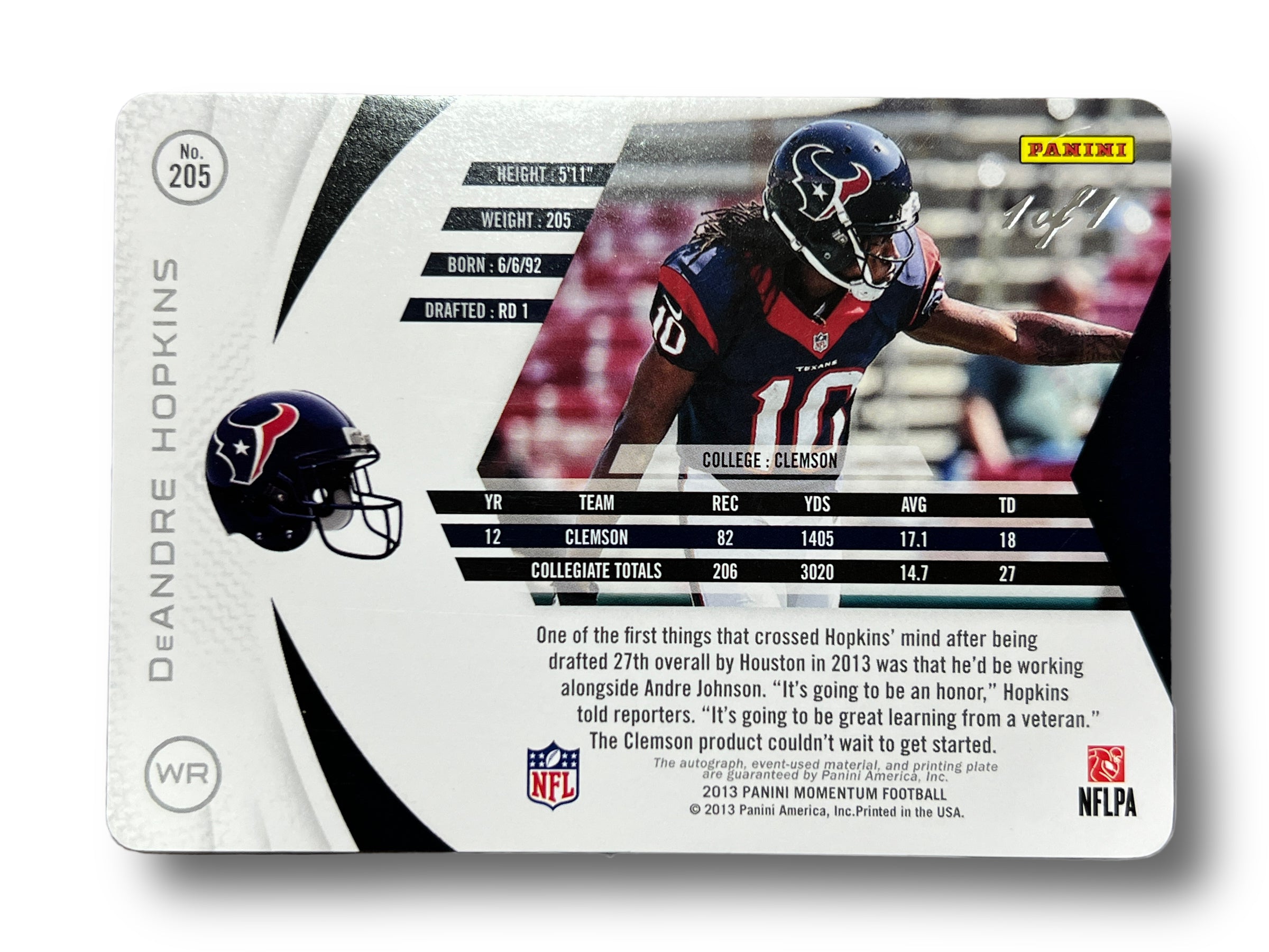 Tarjeta del jugador de los Cardinals Deandre Hopkins