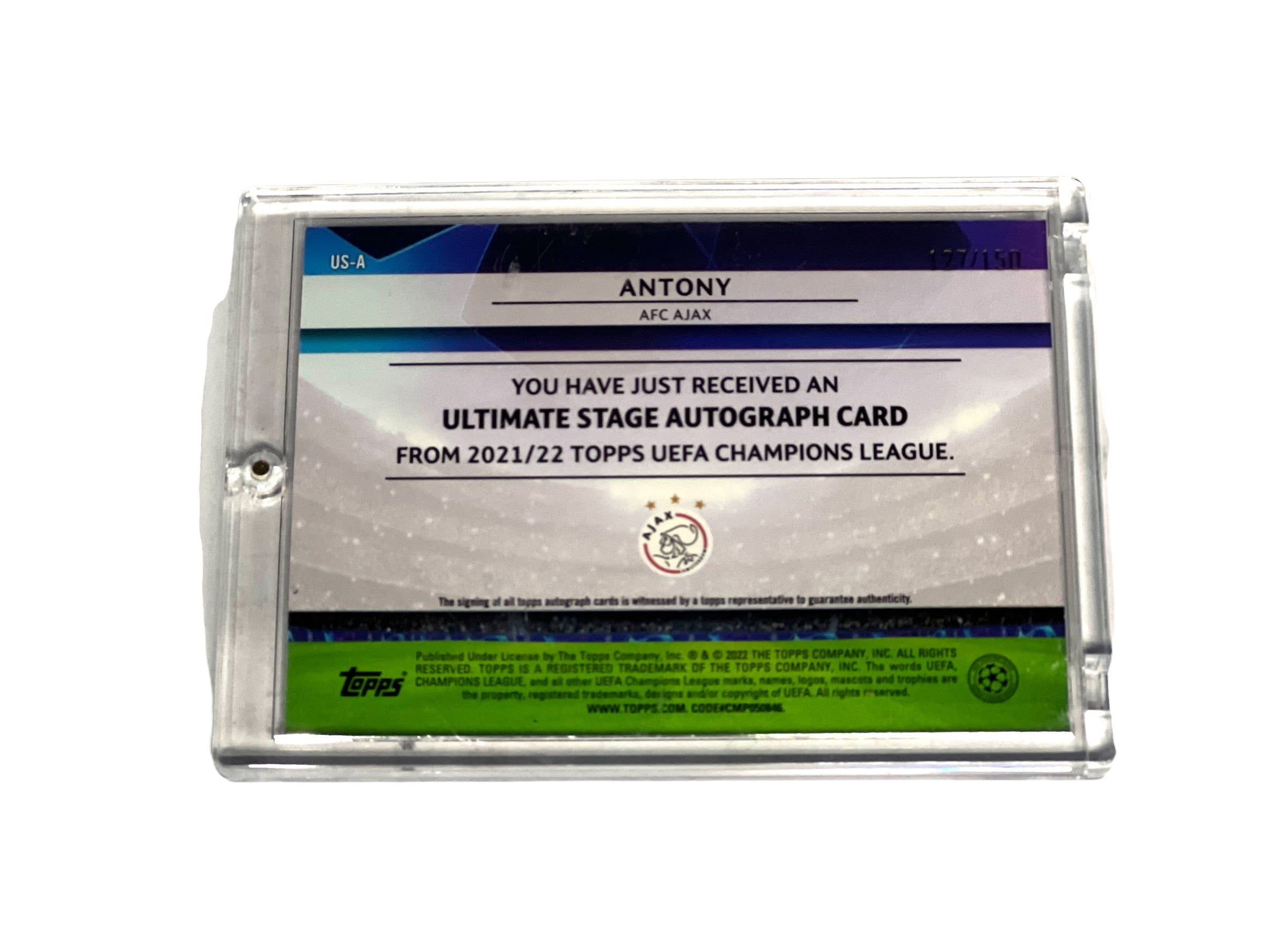 Tarjeta Ultimate Stage Topps autografiada por el jugador del Ajax Amsterdam Antony.