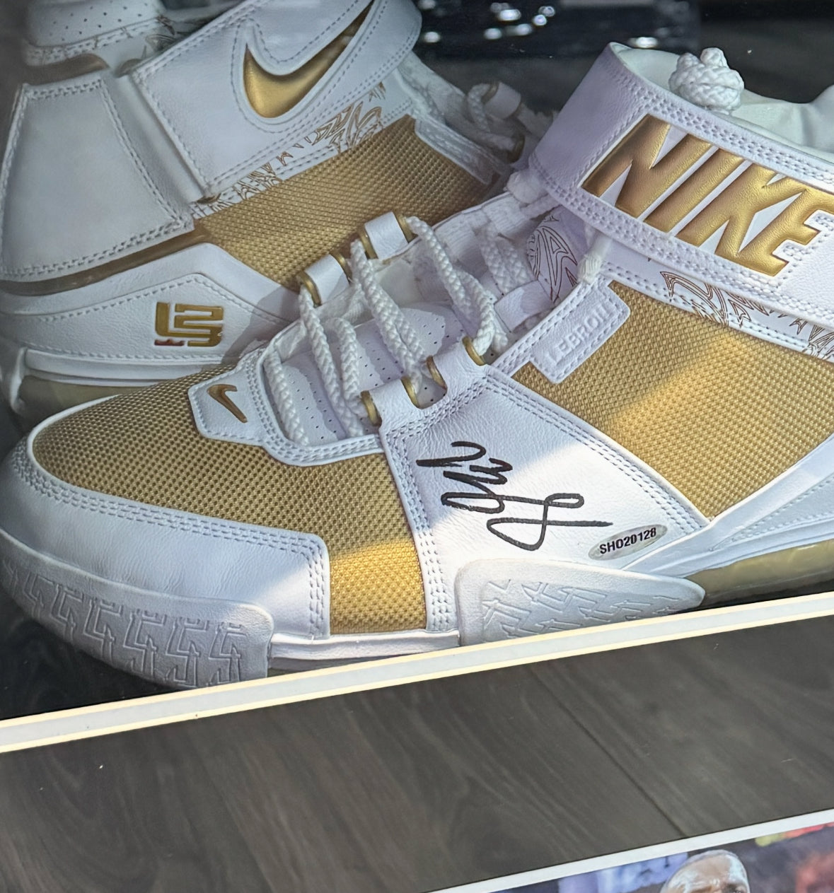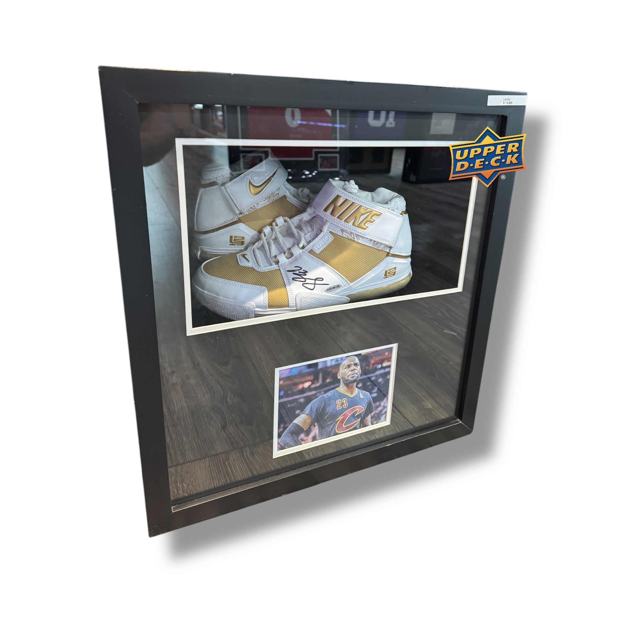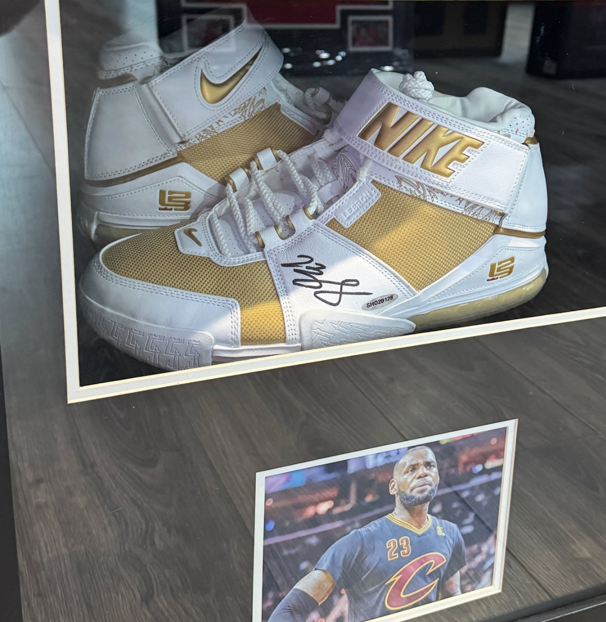 Tenis enmarcados y autografiados por el jugador de los Lakers, LeBron James