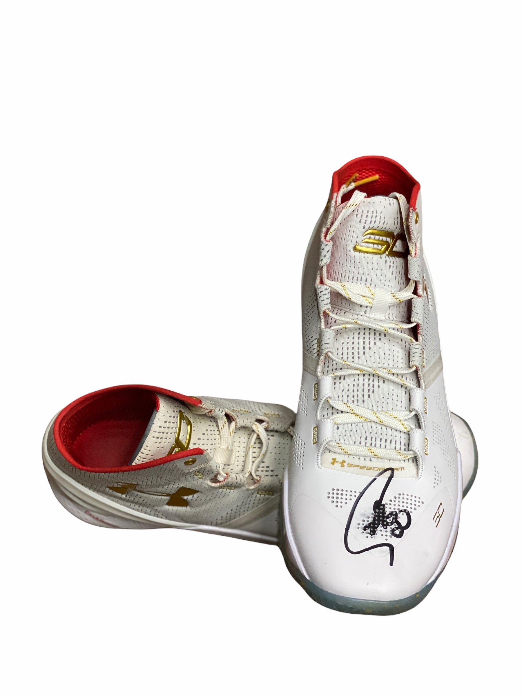 Tenis autografiado por el jugador de los Warriors Stephen Curry certificado Beckett.