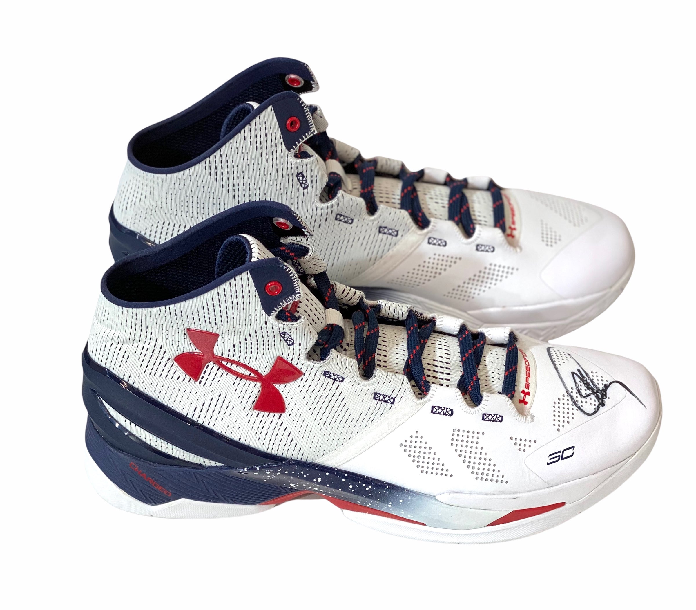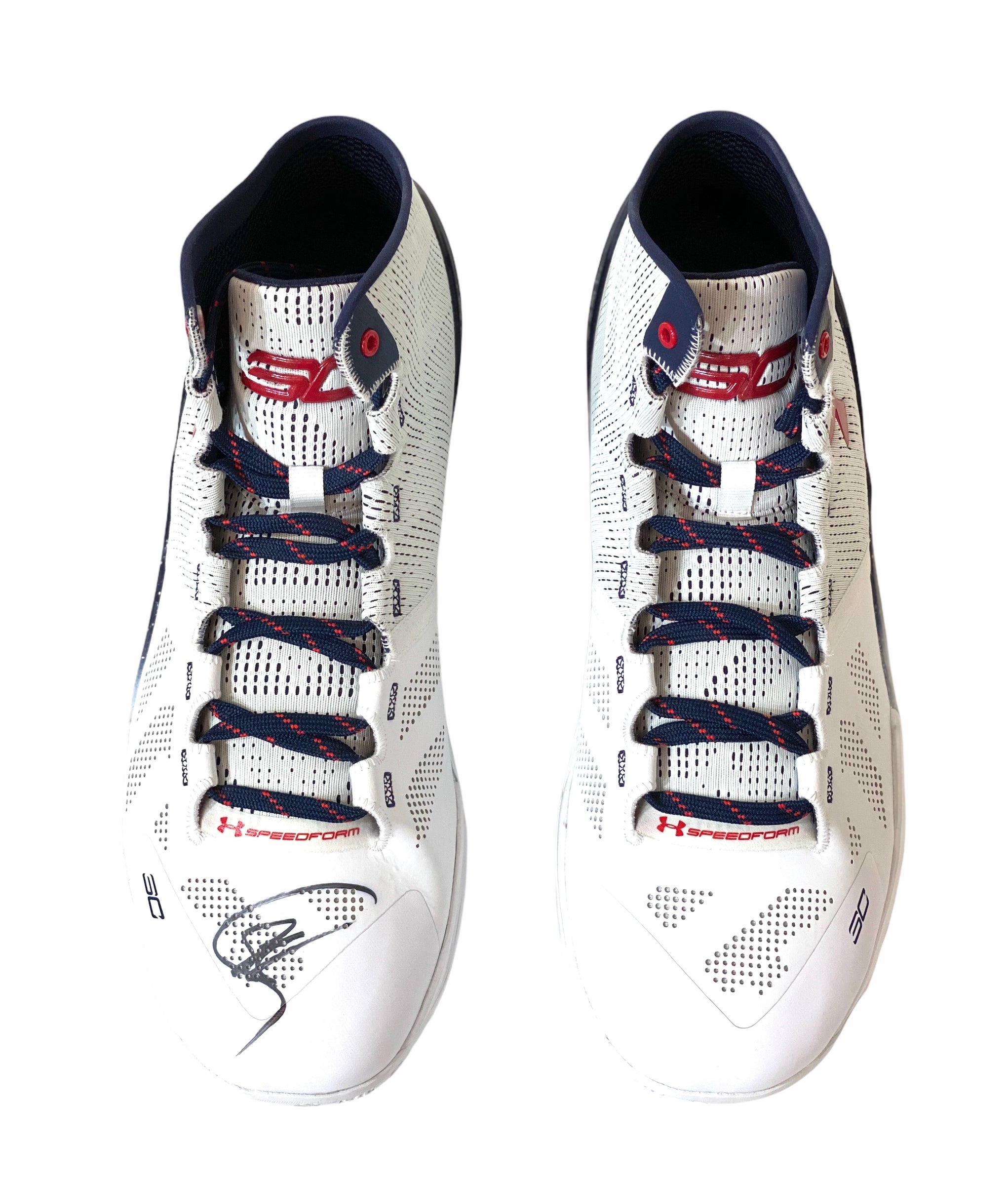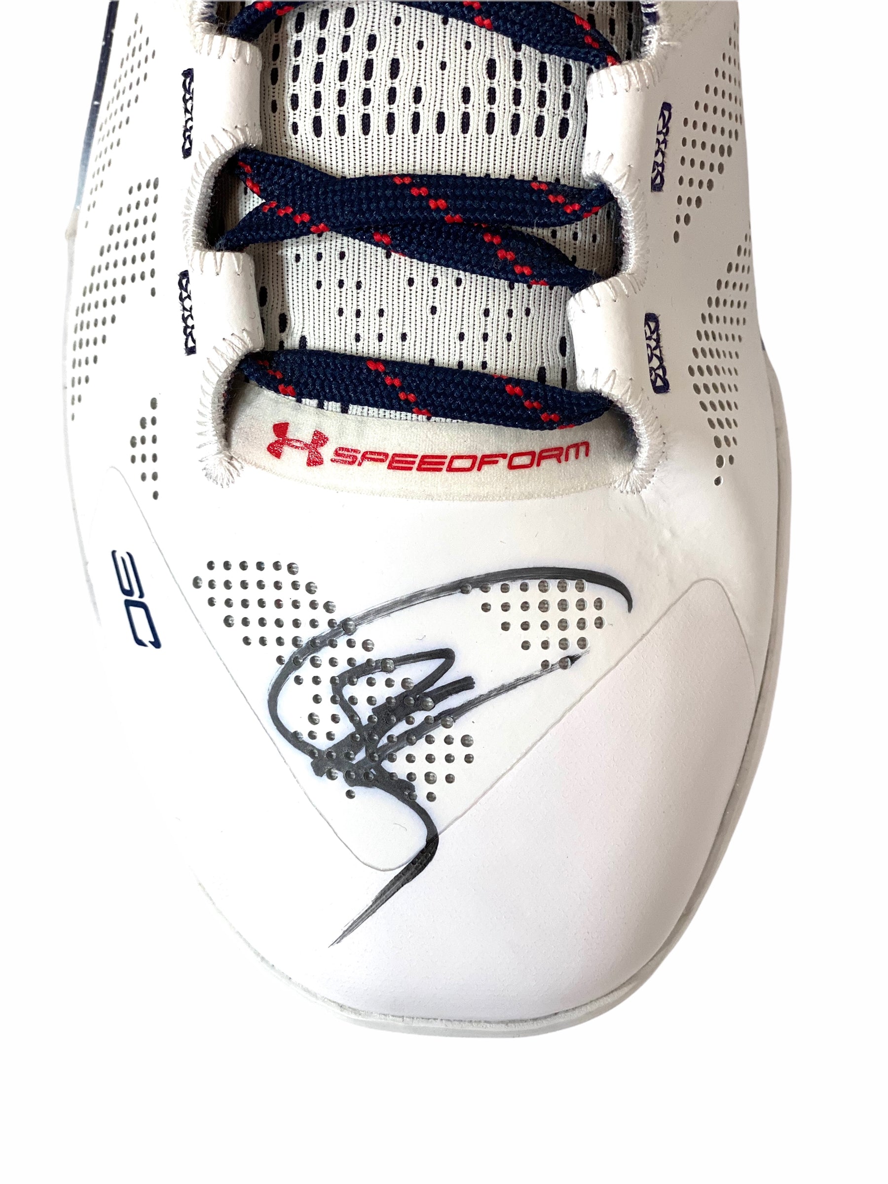 Tenis autografiado por el jugador de los Warriors Stephen Curry certificado JSA (JAMES SPENCE).