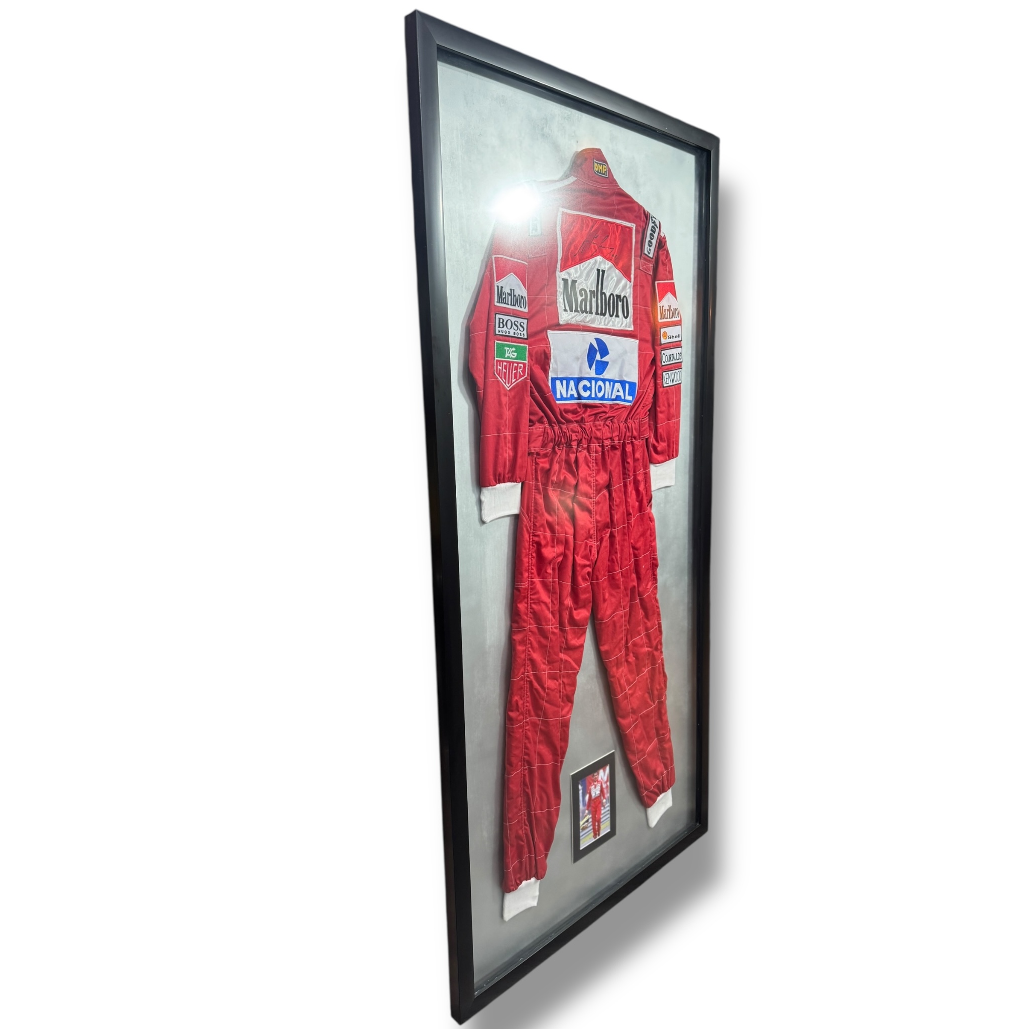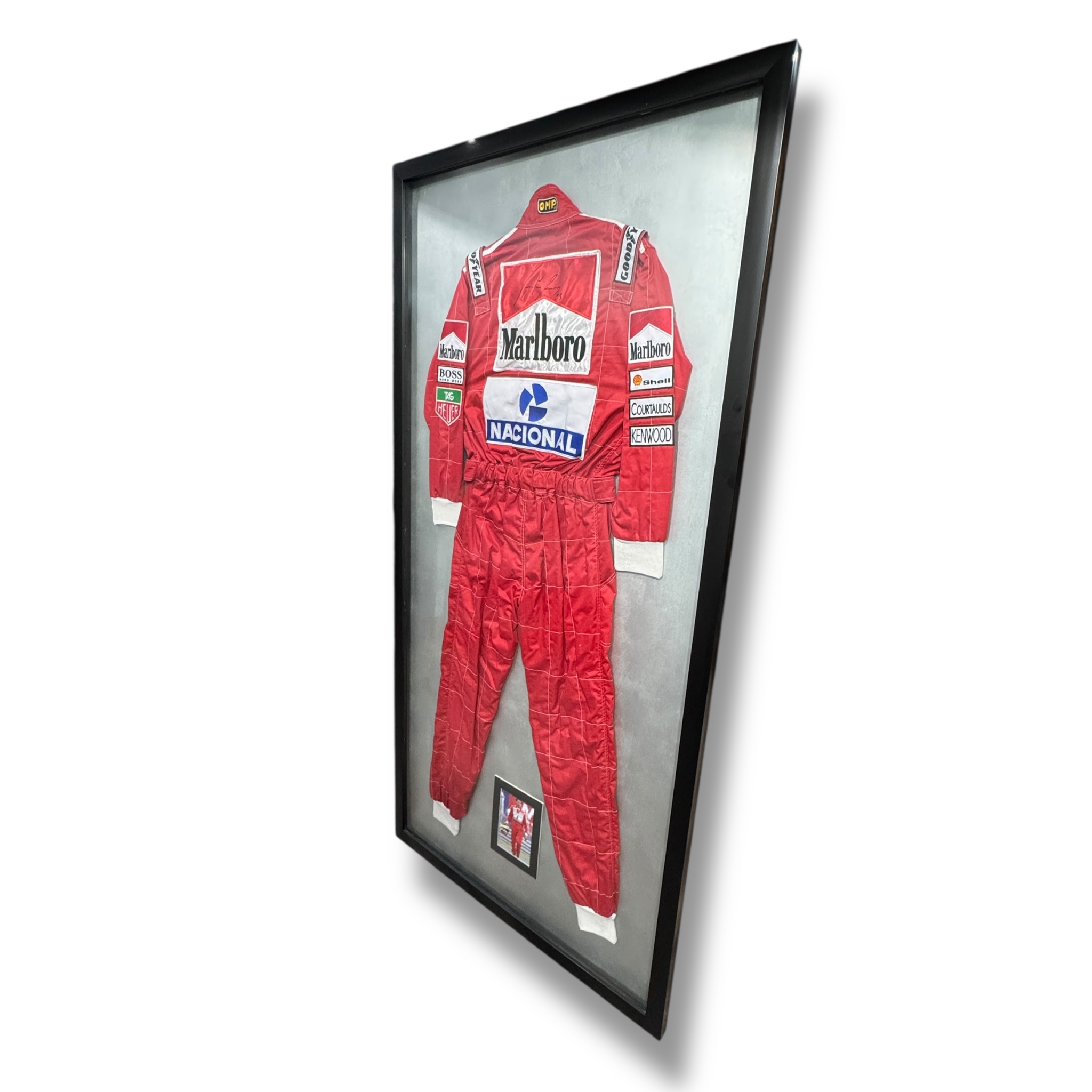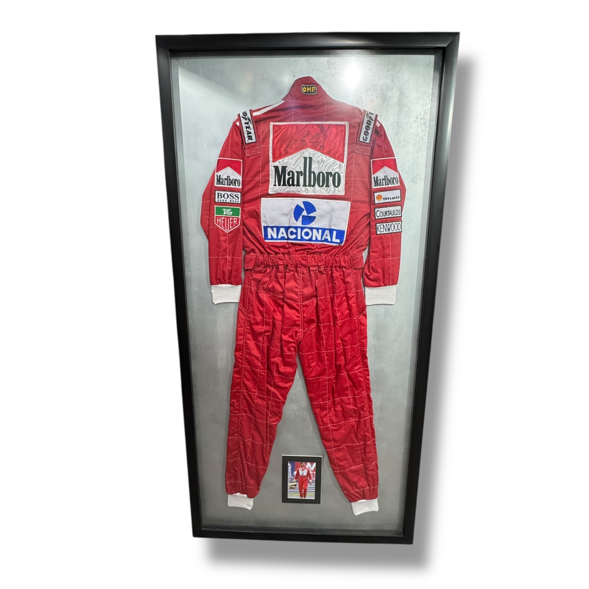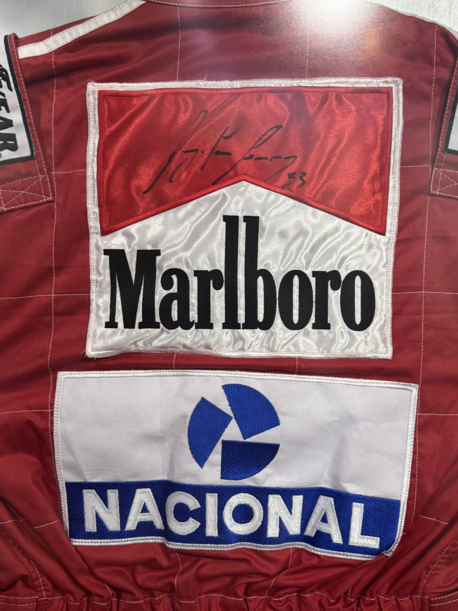 Traje / Nomex replica autografiado por el Ex Piloto de F1, Ayrton Senna.