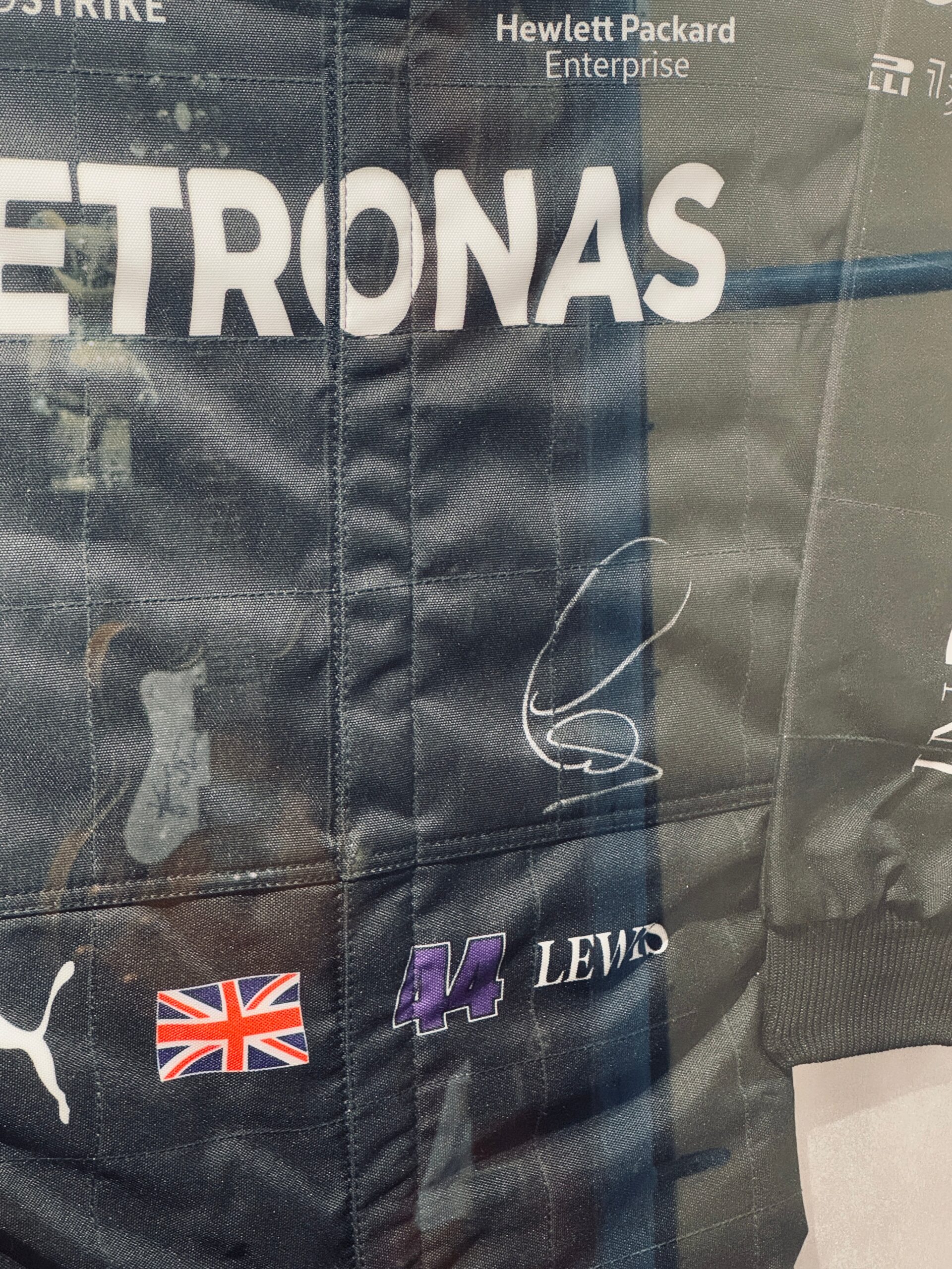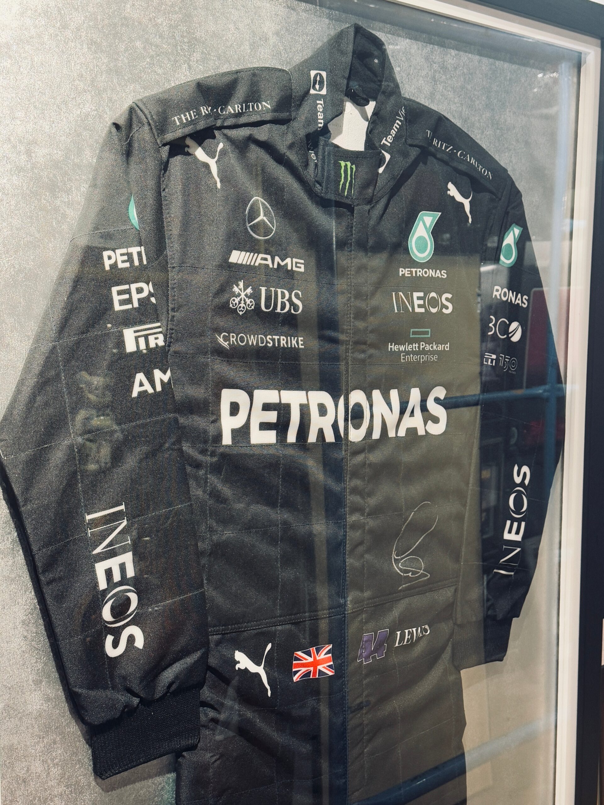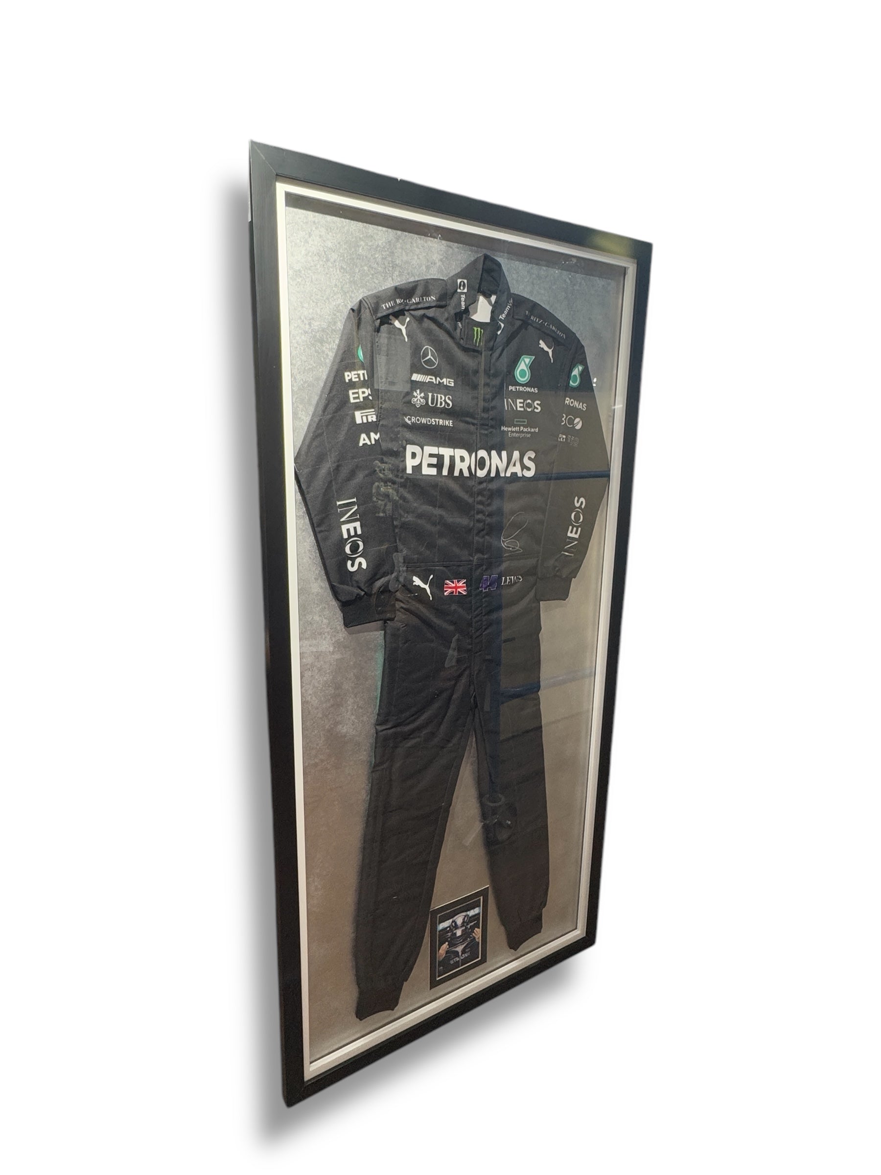 Traje Mercedes Benz Team autografiado por el piloto de la F1 Lewis Hamilton.